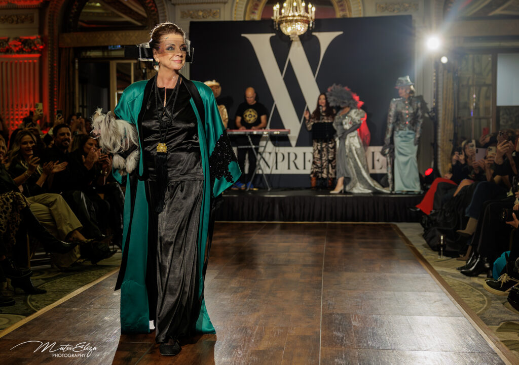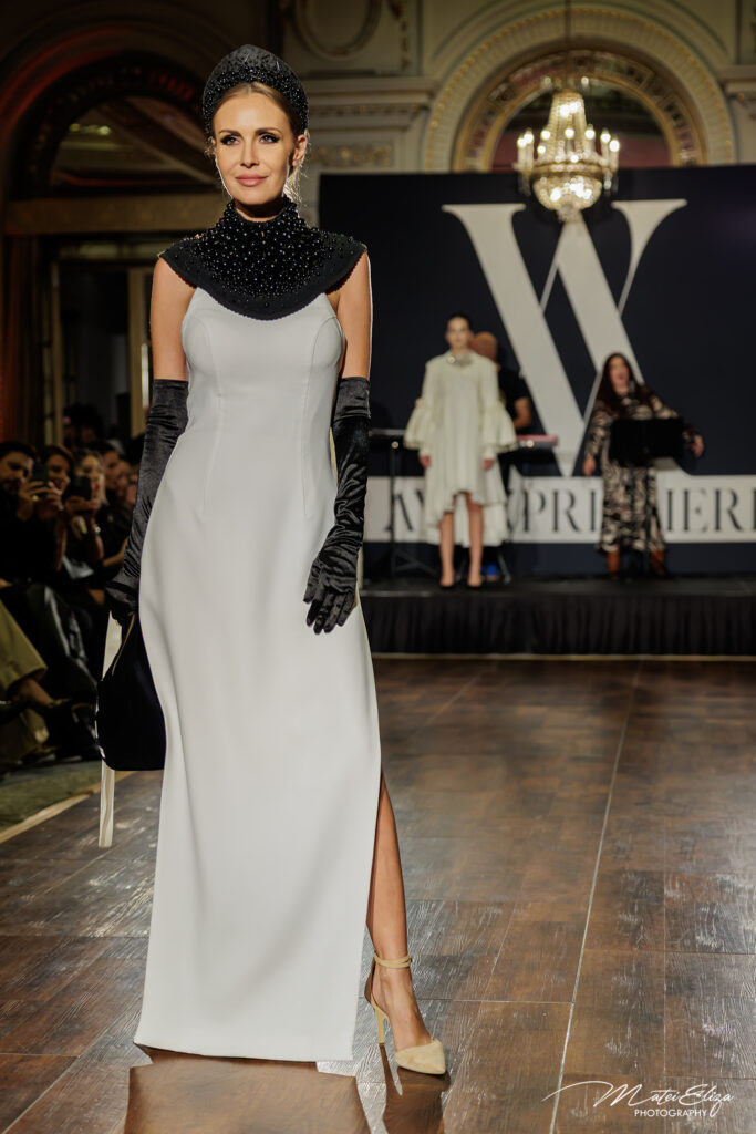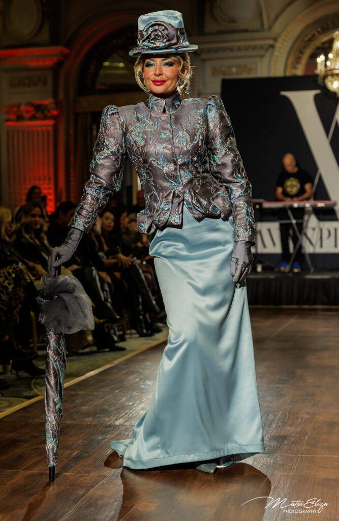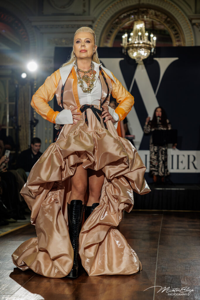 Adevărata revelație a serii a venit din partea celor trei artiste care au demonstrat că eleganța nu cunoaște limite de vârstă. Carmen Tănase și Mihaela Tatu au defilat pentru colecția capsulă semnată de Cera Mihăilescu, purtând ținute cu o teatralitate atent construită. Mihaela Tatu a adus în fața publicului spiritul exuberant al lumii Chiriței, în timp ce Carmen Tănase a fascinat printr-un look futurist, plin de forță și rafinament. Lor li s-a alăturat Alexandra Velniciuc, care a completat tabloul artistic într-o interpretare retro de o eleganță desăvârșită. De cealaltă parte, Ozana Barabancea a rămas fidelă designerului Raluca Soare, care a creat pentru ea o ținută cu accente orientale – un caftan spectaculos cu mâneci fluture, completat de o mască-bijuterie ce a adăugat un aer misterios și sofisticat.