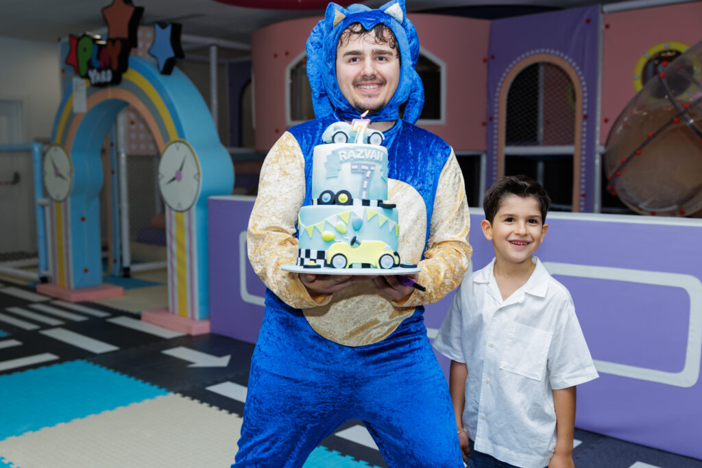 Un motiv în plus pentru care aniversarea noastră a fost atât de reușită a fost animatorul Sonik. Cu energie, carismă și mult talent, a reușit să-i capteze pe copii de la început până la final. A știut să-i implice în jocuri, să-i facă să râdă, să danseze și să trăiască fiecare moment la maximum. Ne-a plăcut tare mult de el, iar cei mici au fost pur și simplu fascinaţi!